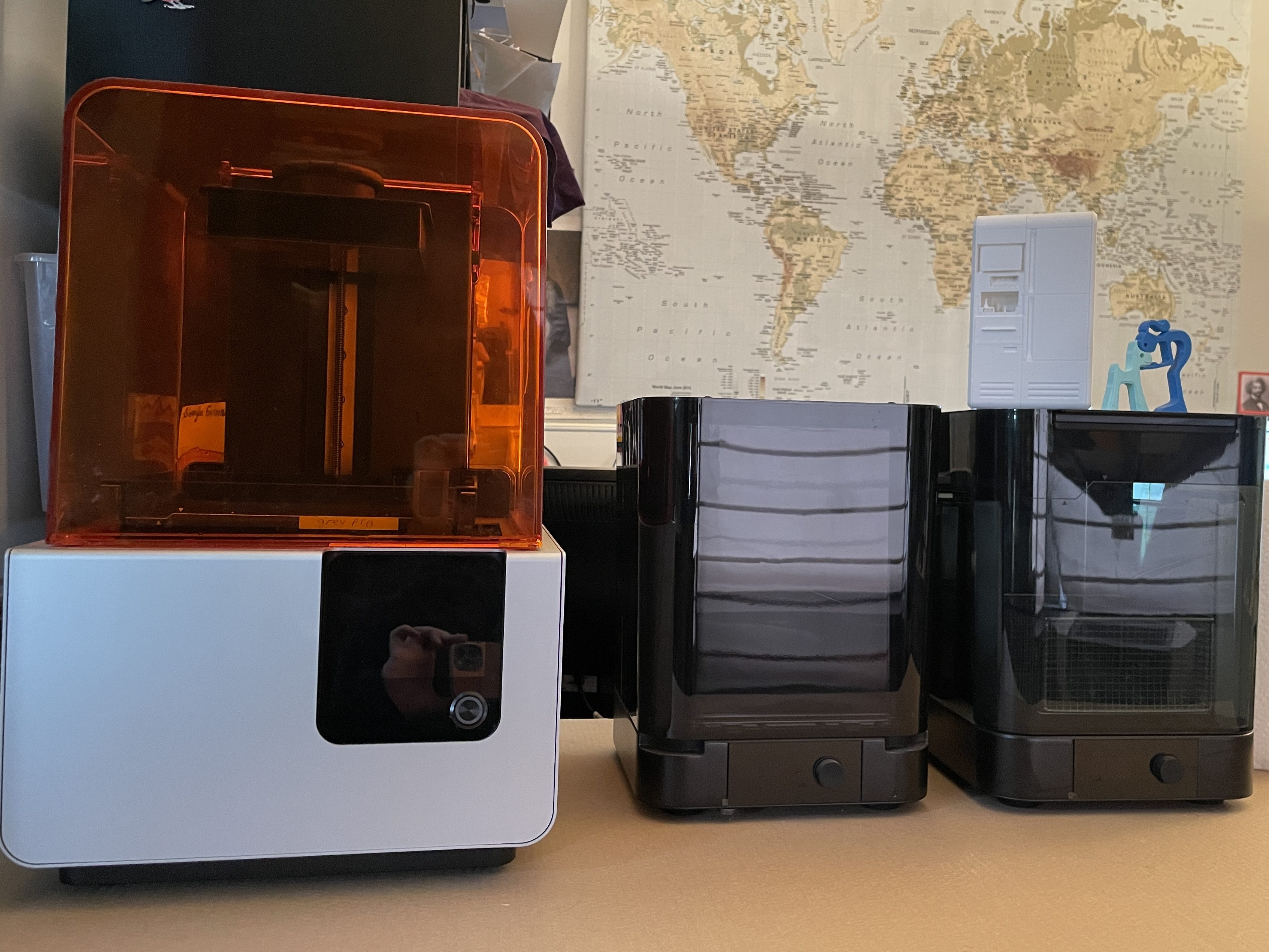 Current materials on-hand include: High Temp, Grey, Grey Pro, Clear, Rigid, Tough 2000, Standard white and castable wax resin (purple)